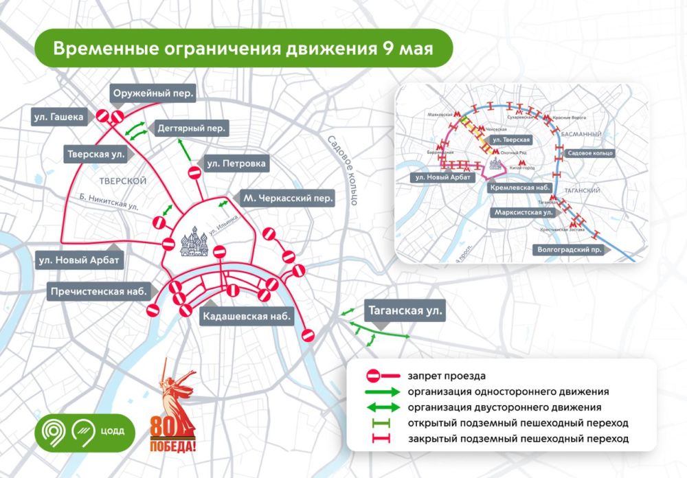 Дептранс Москвы напомнил о перекрытии ряда улиц 9 мая в честь проведения Парада Победы: