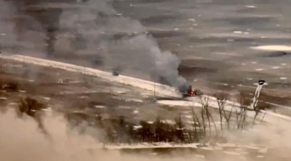 06.02.2025р-н Черкасской Конопельки, Суджанский р-н, Курская область, Россия.Колонна наступающего противника. Идёт активная прожарка.@romanov_92