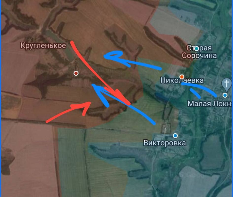 Удар колонной бронемашин наносился вдоль дороги 38К-028 с обходом расположенного рядом села Черкасская Конопелька, где у ВС РФ недавно были успехи.Пока что удар ограниченный, напоминает попытку наступления ВСУ в районе хутора Бердин месяц назад...