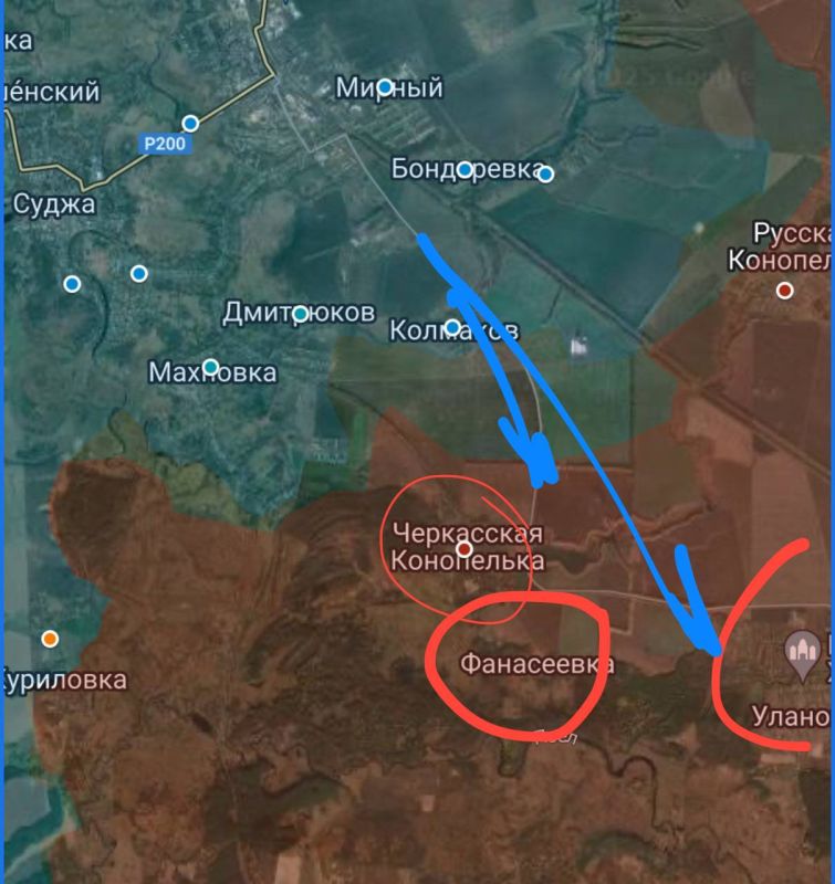 В Курской похоже замес восточнее Суджи. ВСУ двумя бтгр пытаются атаковать в направлении Черкасской Конопельки, Фанасеевки и Уланок. Пошли в прорыв.Сейчас много видео оттуда будет. Идет бой. Жгем технику.