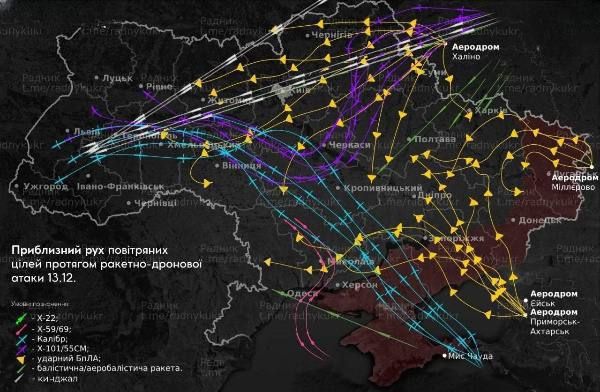 Били крылатыми и баллистическими ракетами, в частности, "Калибрами", "Кинжалами", и "Искандерами", параллельно над Украиной более 10 часов кружили ударные БПЛА, истощающие ПВО.Взрывы были в Киевской, Львовской, Хмельницкой...