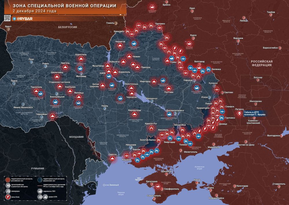 за 2 декабря 2024 годаРоссийские войска поразили объекты противника в Тернополе, Кривом Роге, а также в Киевской, Черкасской областях и других регионах т.н. Украины.На Александро-Калиновском направлении ВС РФ расширили зону...